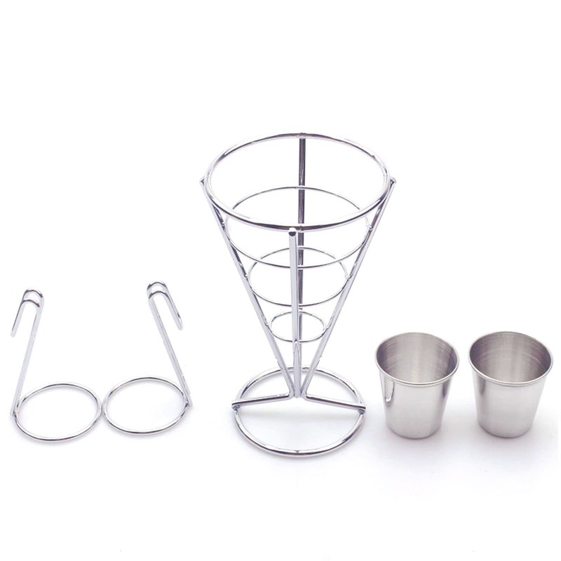 Tefola 1Pc French Fries Stand Cone Basket, French Fry Stand Basket Construction Spiral Cone Shape Iron Chrome Plated 14x10cm Steel Color for Restaurants