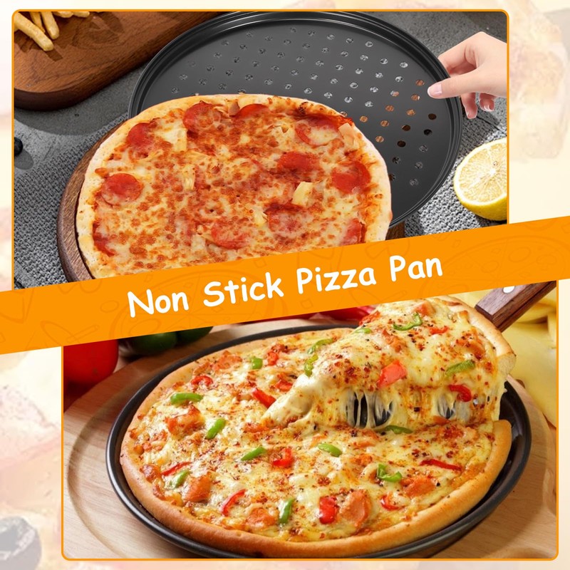 - VERSATILE BAKING SOLUTION -- Beyond pizza, this versatile round pizza pan tray can be used for baking and serving a variety of foods, including bread and pancakes. Discover endless possibilities with one convenient tool.