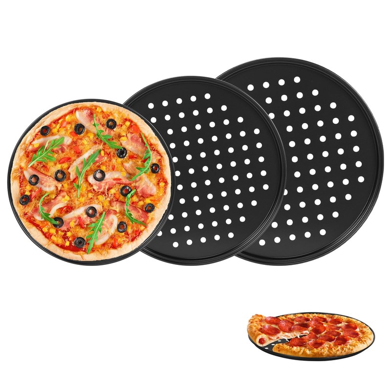 - THREE SIZES -- Including 12.6 inches, 11 inches, and 9.6 inches pizza plates, the set meets all your pizza-making needs and beyond. Perfect for accommodating different pizza sizes and additional kitchen uses.