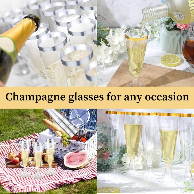 - Tazas de plástico elegantes para fiesta: coloca la mesa con el diseño atemporal de copas de champaña con tallo mientras utiliza vasos de plástico elegantes y económicos. Úsalo como decoración de fiesta de compromiso o como flautas de champaña de boda.