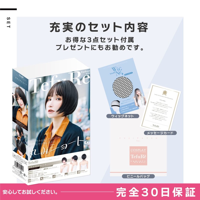 • "TefuRe? Tefure wig is a fashion wig brand for everyday use. You can easily change your hair to a new hairstyle or hair color. Recommended for when you feel different or want to have a little adventure. It also comes with a wig net and guide book, so even if you have not experienced the wig, you can enjoy it with confidence. Comes with a stylish clear box that makes it perfect as a gift. As part of your fashion coordination, enjoy a new hairstyle with Tefure Wig