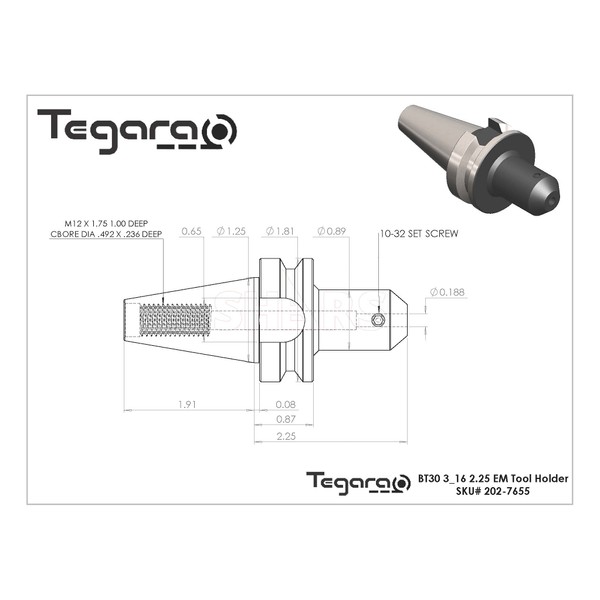 - Drawbar Thread Size: M12x1.75, Shank Size: BT30