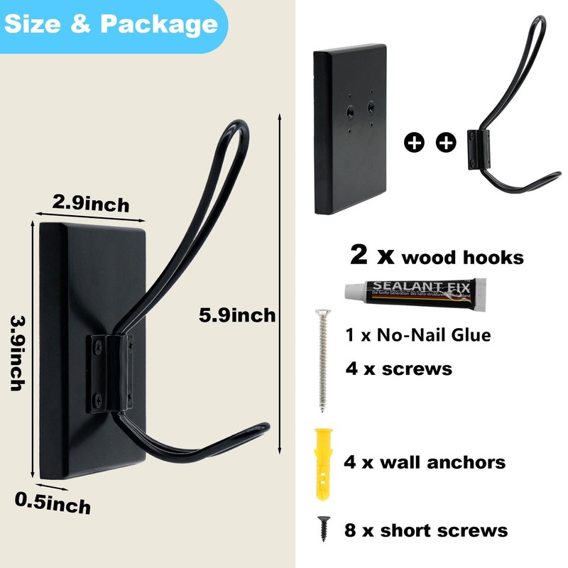 - 【Package Includes】:2 pack of iron towel robe hooks and wooden boardand required accessories, One coat towel hook can hold up to 35 pounds of weight. (punching installation)