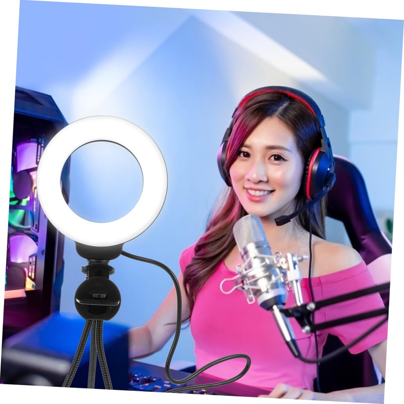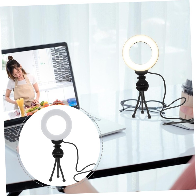 TEHAUX 1 Set Ring Light Portable Webcam Lighting for Video Conferencing Self Broadcasting Brightness Photography Light with Tripod Clip for Festivals Live Streaming