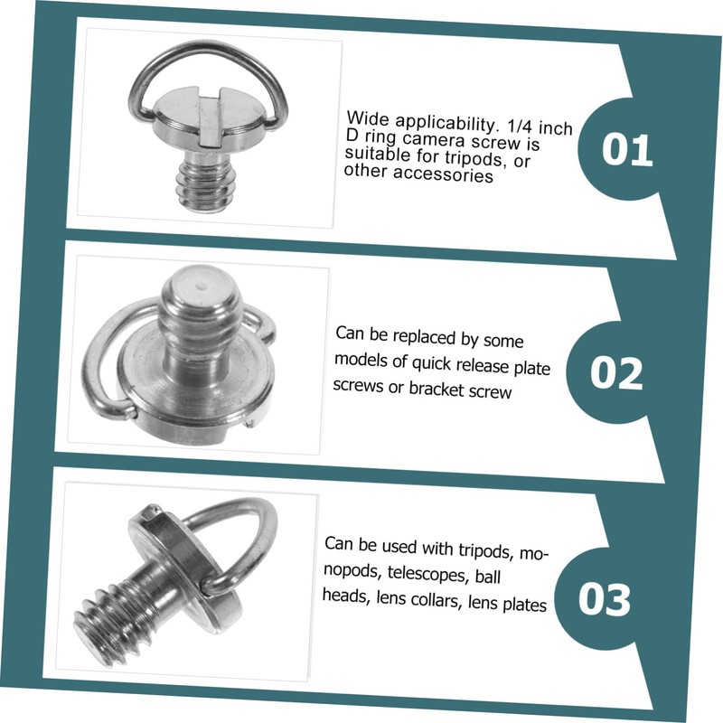 - Wide applicability. 1/4 inch D ring camera screw is suitable for tripods, or other accessories camera tripod screw adapter.