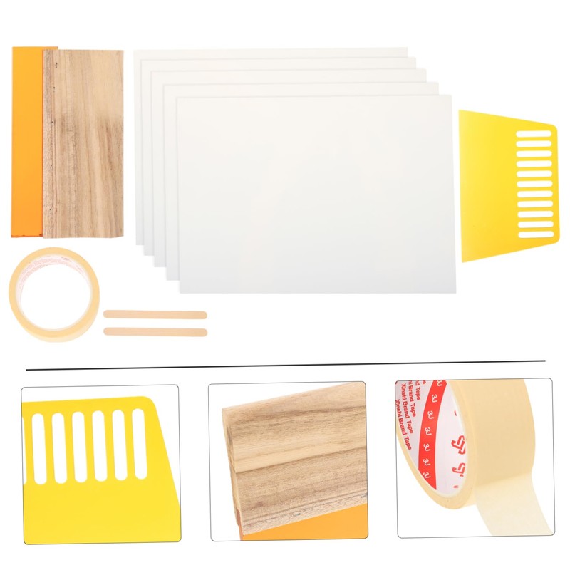 1 x Scraper 1 x Plastic Scraping Board 1 x Roll of Tape 5 x Sheets of A4 Films 2 x Mixing Rods