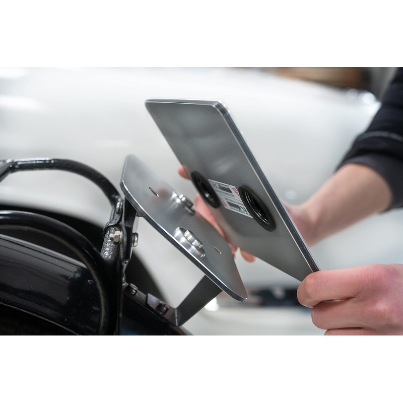The attachment of number plates is revolutionised with our product. By tilting up or down on both hands, the magnetic connection is released and thus easy handling is ensured. Our product offers the possibility of quick and easy number plate changes. For assembly and handling, please visit our homepage. An assembly video is available there.