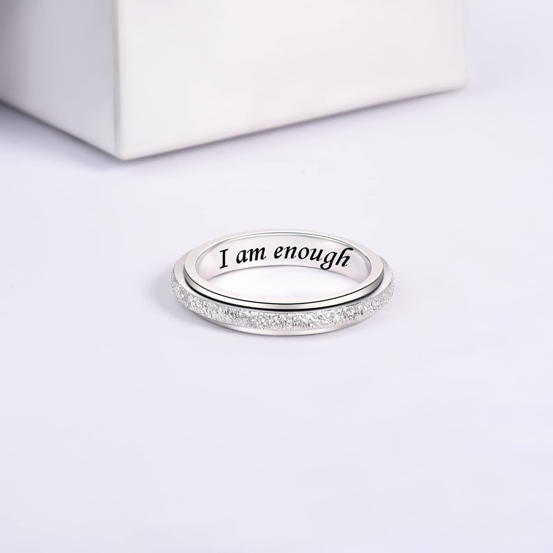 - Simple sterling silver ring engraving inspirational words: I am enough;make it a stylish every day reminder for people with depression to go through hard time