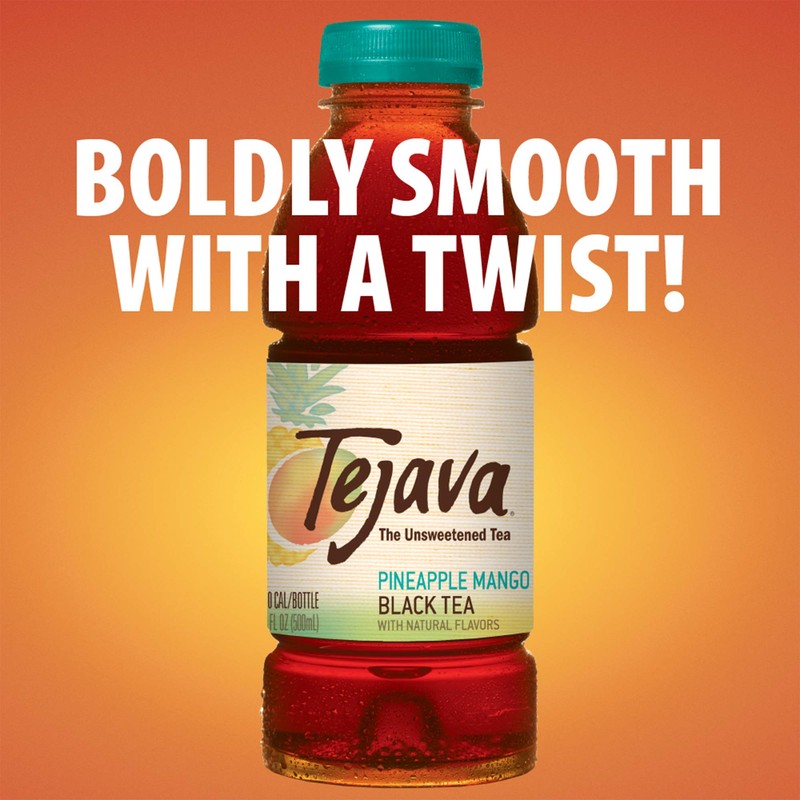 Tejava Unsweetened Black Iced Tea PET Bottles, Pineapple Mango, 16.9 Oz, Pack...