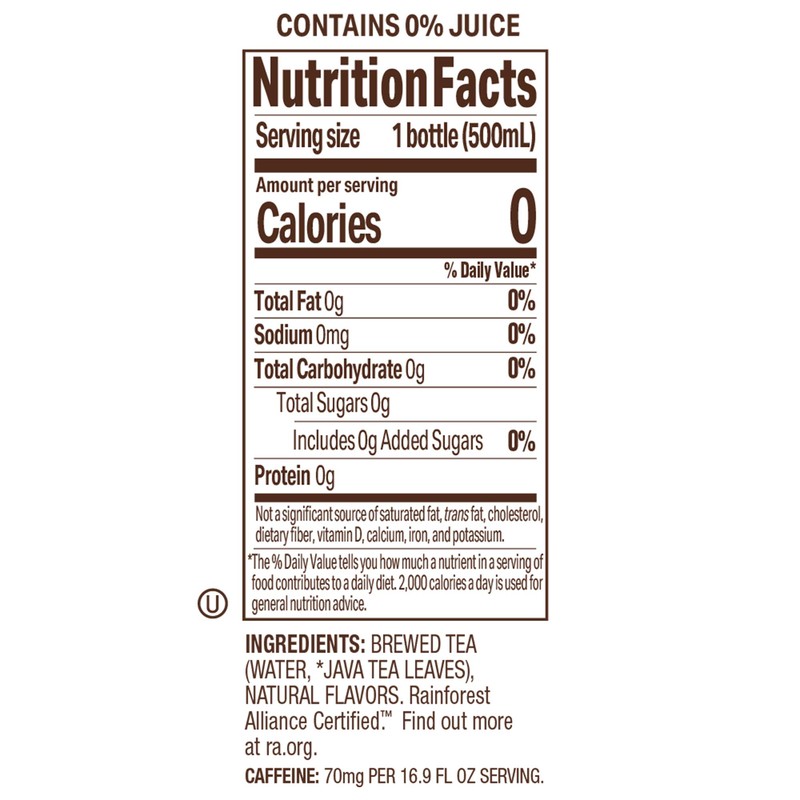 • Ingredients: brewed tea (Java tea leaves, water), Natural flavors