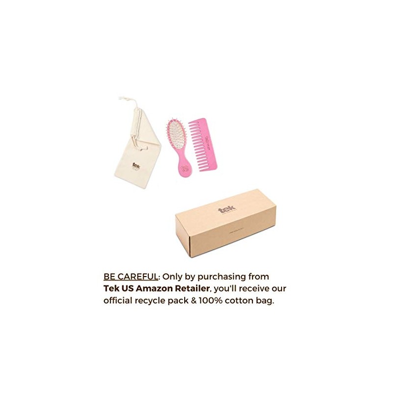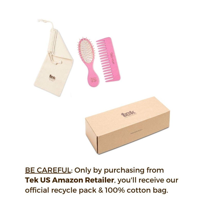 TEK - Purse Kit: Small Oval Brush and Comb Rado Pink with Cotton Bag for Normal and Coarse Hair, Handmade in Italy