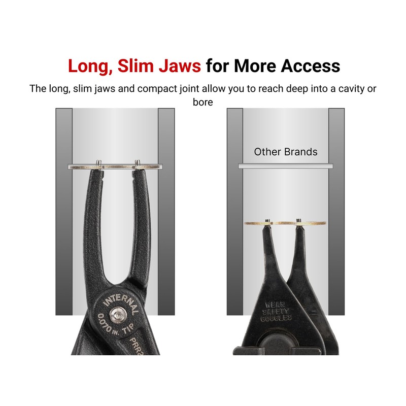 - Long, Slim Jaws for More Access – The long, slim jaws and compact joint allow you to reach deep into a cavity or tight against a shaft