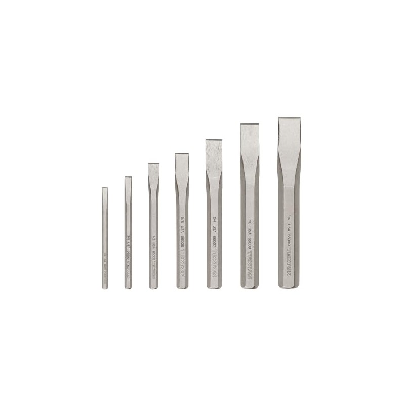 - Includes 7-pc. cold chisels: 1/4, 3/8, 1/2, 5/8, 3/4, 7/8, 1 in.