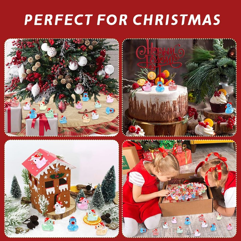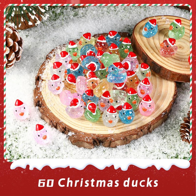 TELAIN 60 Colourful Small Christmas Glitter Resin Ducks for Party and Garden Decorations, multicoloured
