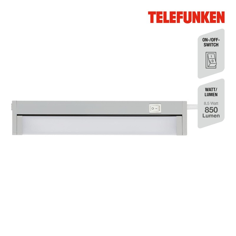 Telefunken - LED Under-Unit Light Swivelling, 31 cm, Kitchen, LED Strip Kitchen Cabinet, Workshop Lamp, Warm White Light, 5.5 W, 600 Lm, Grey