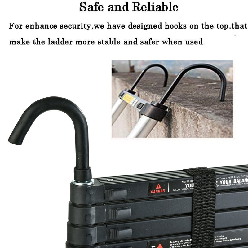 - The Telescopic ladder is made of high-quality aluminum alloy, light weight and easy to carry. corrosion-resistant, strong and durable. It is an ideal tool to help you draw walls, replace bulbs, clean windows, clean drains, repair roofs, etc. Suitable for home and business use. Telescopic ladder makes your life easier.