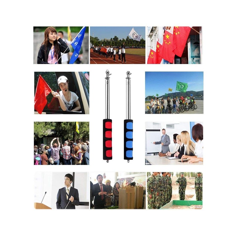 Telescopic Flag Pole,2 Pack Guide Flag Stainless Steel Telescopic with Sponge Grip Flagpol Collapsable Teaching Pointer for Tour Guides Camping Travel Marchers Flags Banners Teachers 2M Blue+Red