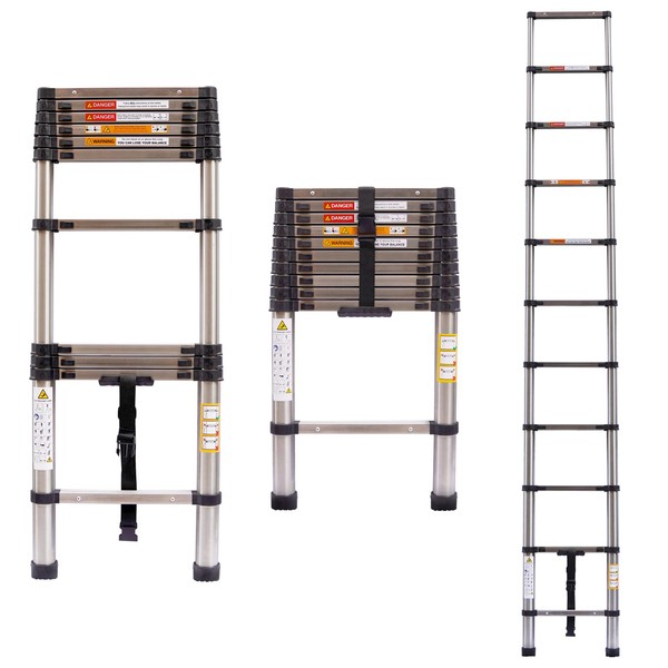 • 【BETTER LOAD BEARING THAN ALUMINUM】Compared to the aluminum telescoping ladder, our telescopic ladder use Stainless Steel material, which has much better load bearing,it' more sturdy and more safe. And it's premium stainless steel, which is wear resistant and does not rust. The non-slip caps improves stability, your safety is of paramount importance.