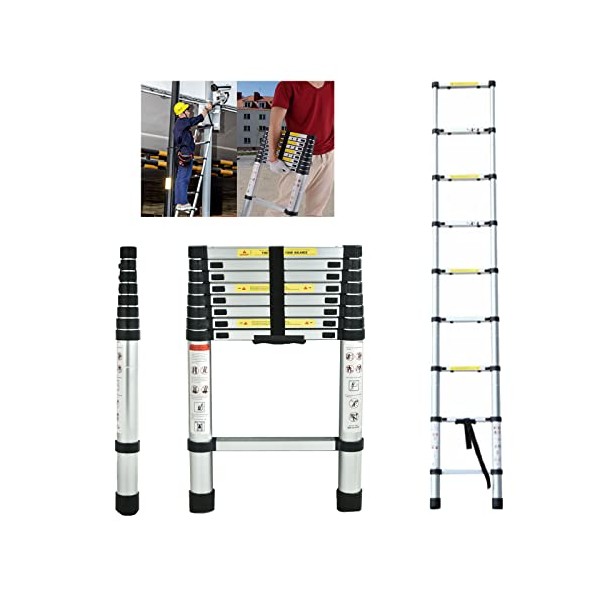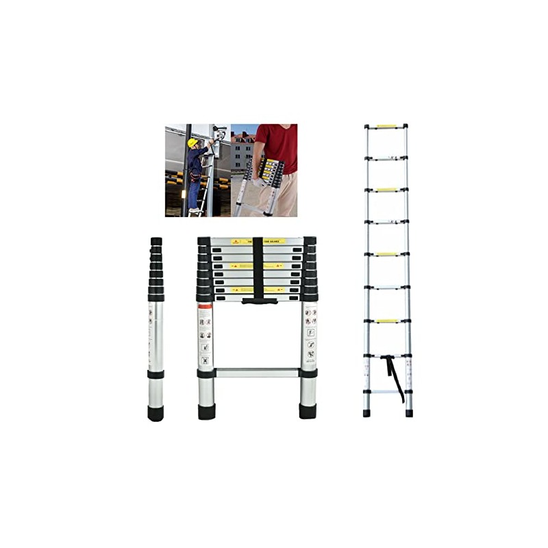 - đșăAluminum Telescoping LadderăTelescopic Extension Ladder is crafted from high-quality aluminum alloy, max weight capacity of up to 330 lbs! Approved by safety standard EN131.