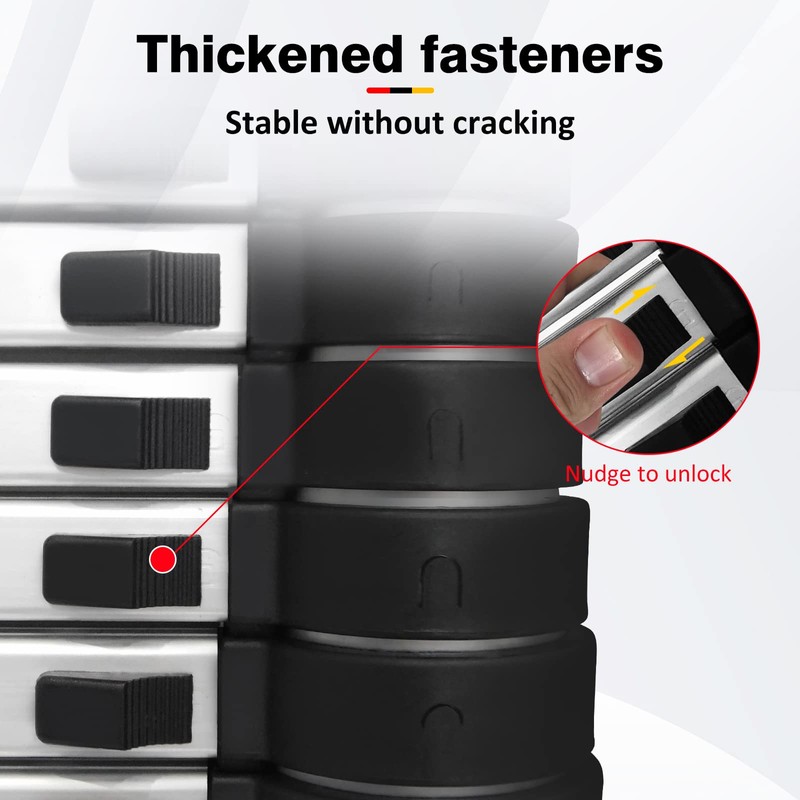 • 🚩 【 Adjustable and Safe 】 Our sturdy telescopic ladder is equipped with a locking device that can adjust the height in units of one level and be securely locked by sliding the latch. The texture steps and width (4cm) ensure stability on the surface of the aluminum ladder.
