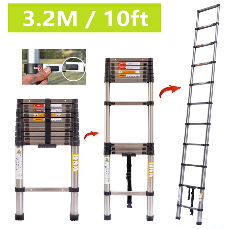 Telescoping Ladder Extension Ladder 10FT Collapsible Ladder Telescopic Extend...