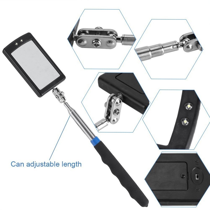 • Telescoping mirror has 2 extra bright LED lights facilitate the inspection of hard-to-see and hard-to reach areas