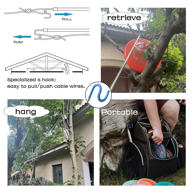 - 3 USEFUL ATTACHMENT: DOUBLE HOOK + S HOOK + MAGNET. The double hook is designed for retrieving discs from tall trees, lake, river, ponds and any water hazard. Extend your reach into difficult places