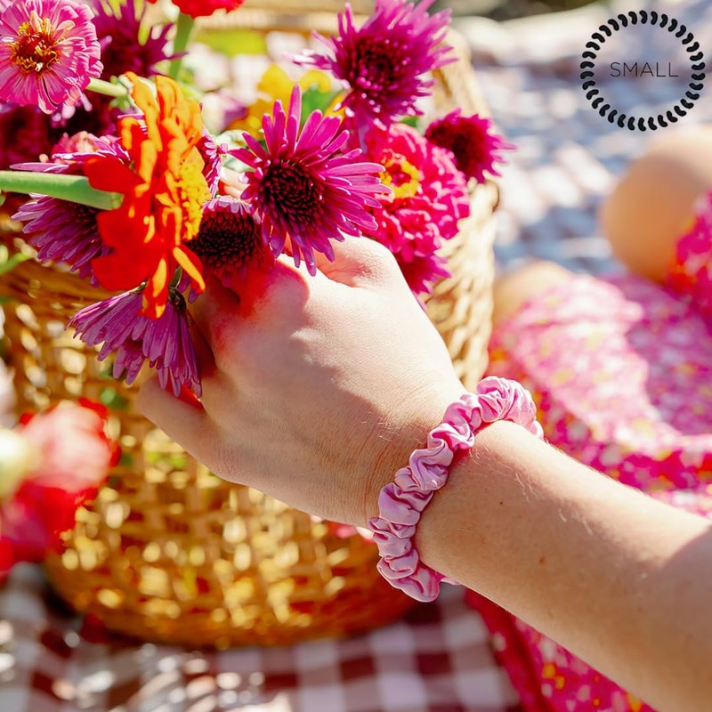 Teleties Small Silk Scrunchie - Rose All Day, 1 Count, Soft & Gentle on Hair, Prevents Breakage & Damage, Safe for Sleep, Ideal for Thin-Medium Hair, All Hair Textures