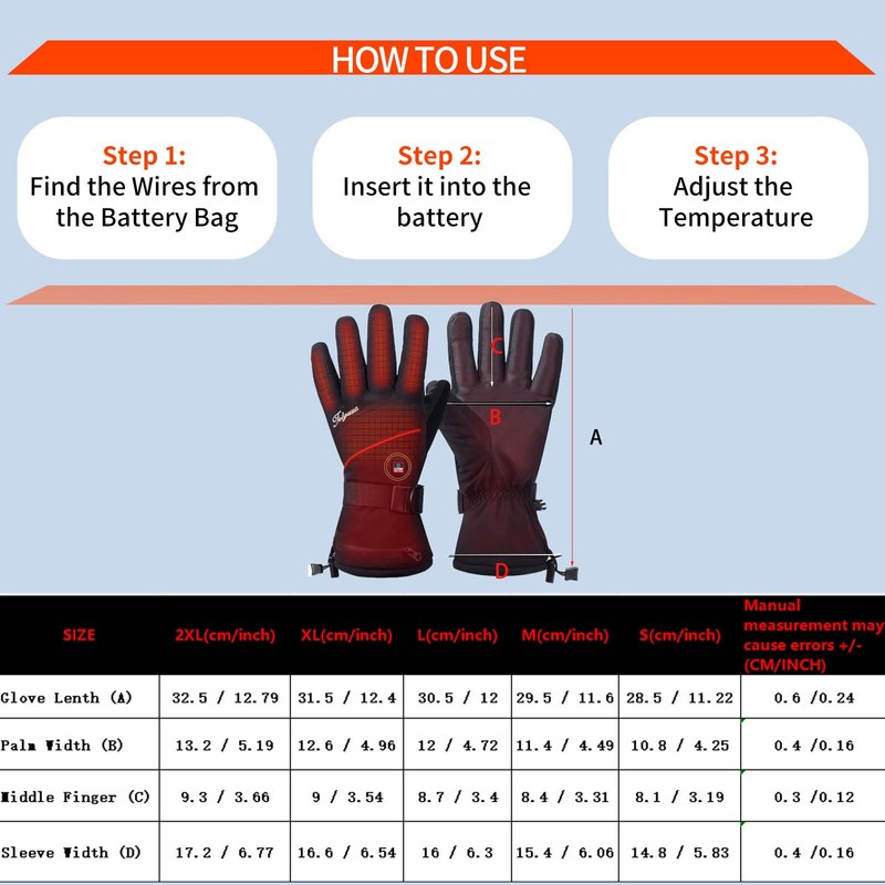 - ❄️Touch screen heated gloves: thumb and index finger are made of the latest touchscreen material from 2024, so you can operate your tablet, mobile phone or the screen of your car without having to take them off. Winter heating gloves are ideal for skiing, snowboarding, snowmobiling, hunting, ice fishing, sledding, cycling, shoveling, working outdoors and for anyone who has cold hands.