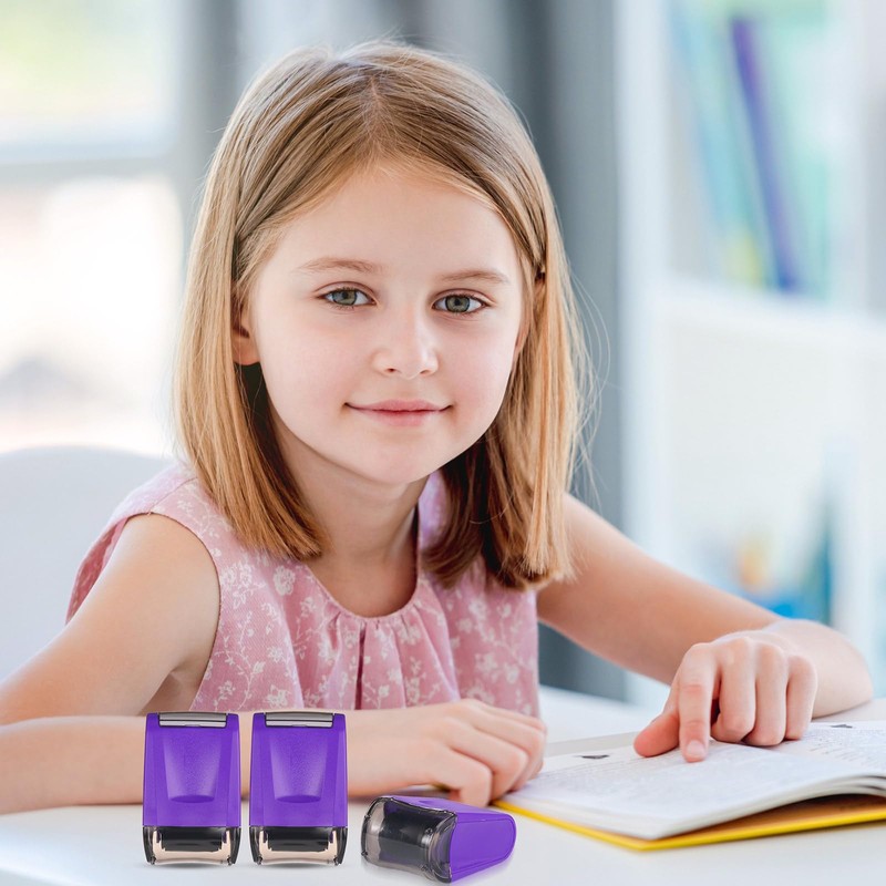 Teling 3 Pcs Dashed Handwriting Line Practice Roller Stamp Self Inking Line Rolling Stamps Teacher Stamp Sentence Strips Handwriting Practice for Kid Teacher Classroom Office (Purple)