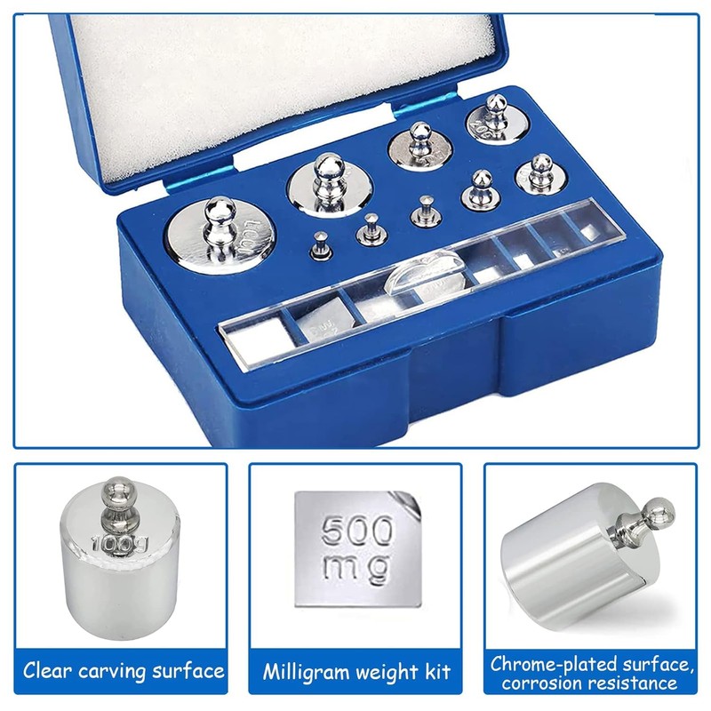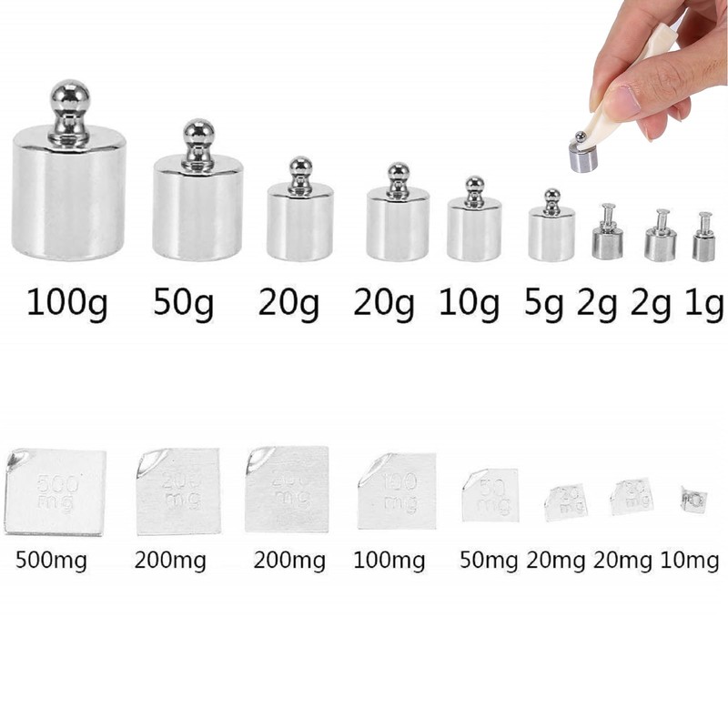 - 【Sufficient Quantity】This weight set contains 17 precision calibration weights with a total of 13 different specifications. 17-piece weight scale set: 1 x 100 g, 1 x 50 g, 2 x 20 g, 1 x 10 g, 1 x 5 g, 2 x 2 g, 1 x 1 g, 1 x 500 mg, 2 x 200 mg, 1 x 100 mg, 1 x 50 mg, 2 x 20 mg, 1 x 10 mg, different scales for precise measuring. Enough quantity for your use.