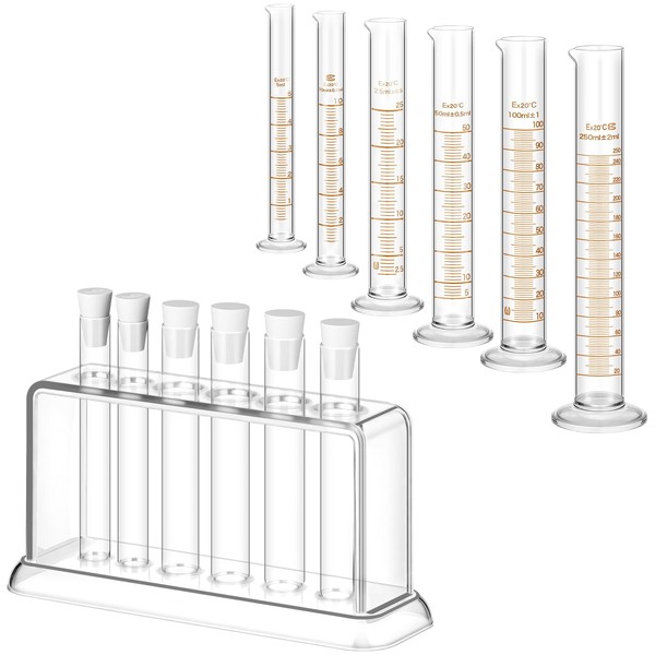 • Packaging List: these six glass graduated cylinders offer a transparent design for precise visibility measurement; Whether you are using 5ml or up to 250ml, the clear scale ensures accuracy; It comes with a glass test tube rack for holding graduated cylinders, meeting the needs of both professional and amateur laboratory personnel