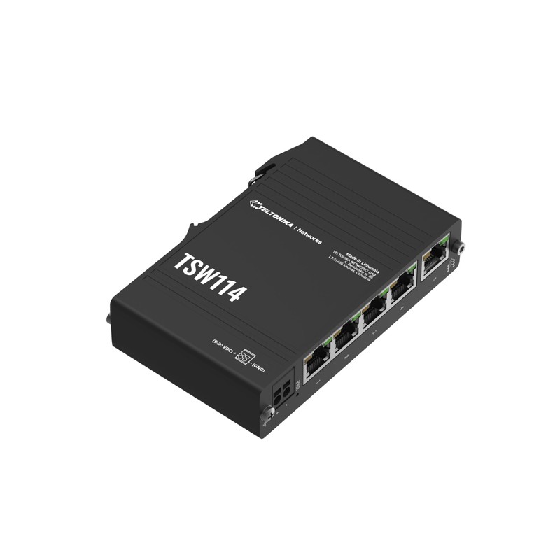Teltonika TSW114 DIN Rail POE+ Switch 1 Gibabit Port 4 Gigabit POE+ Ports