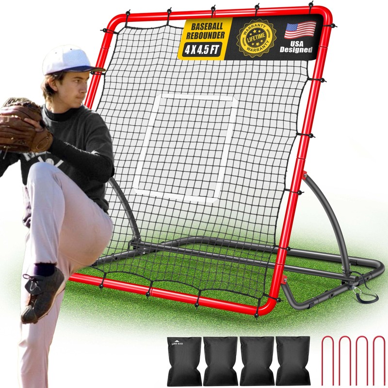 - Versatile Fielding Training: Our 4x4.5 Ft baseball and softball rebounder offers 3 adjustable ball-return angles, allowing you to effortlessly switch between fielding ground balls, catching line drives, and snagging fly balls. With the removable target strap, you can also fine-tune your pitching accuracy