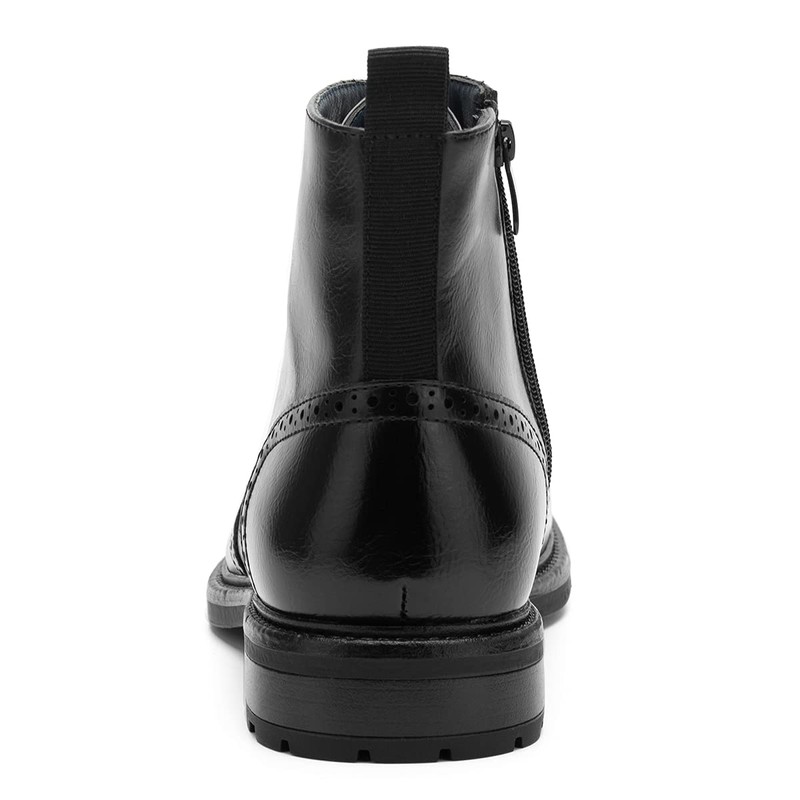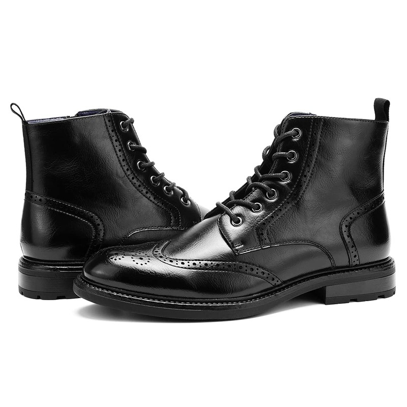 - Mens Dress boot features a wingtip toe and brogue details with a lace-up and side zipper closure.