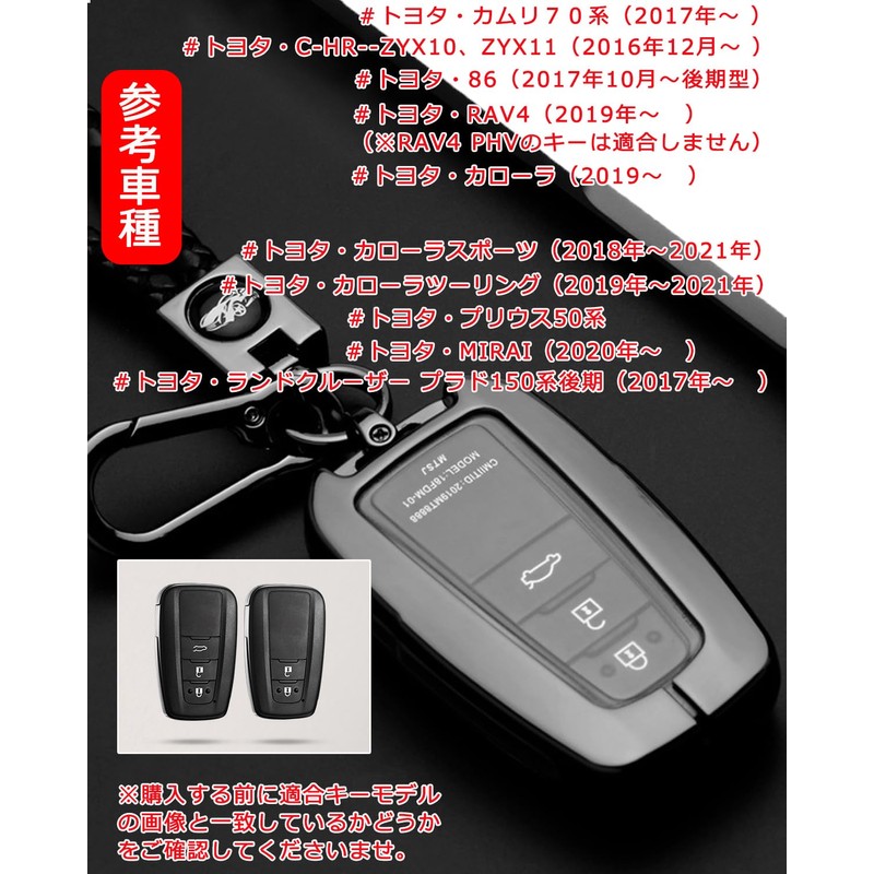- Compatible models: Toyota Camry 70 series (2017 and up), Toyota C-HR--ZYX10, ZYX11 (December 2016), Toyota 86 (October to Late 2017) / Toyota RAV4 (2019 and up) (*Does not fit RAV4 PHV keys). Laura (201) 9~ / Toyota Corolla Sport (2018-2021) / Toyota Prius 50 Series / Toyota MIRAI (2020-20) / Toyota Land Cruiser Prado 150 Series (2017-) * Please check whether the shape of your car key matches the photo before purchasing