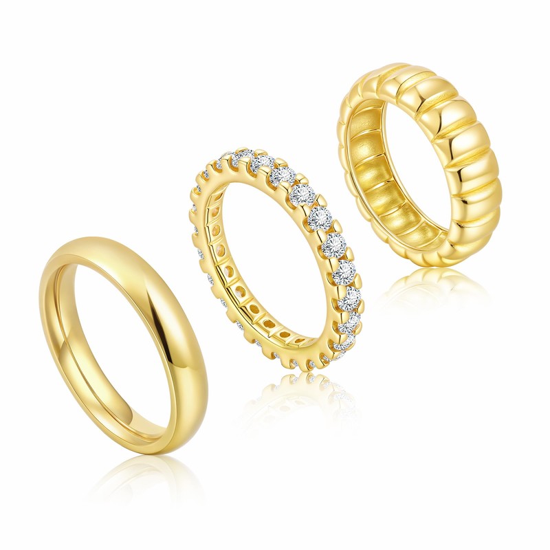 TempBeau Women's Rings with Cubic Zirconia, 14 K Gold-Plated Ring Set Made of Stainless Steel Copper for Women, Girlfriend, Mum, Finger Ring, Jewellery, Stackable, Waterproof Rings for Birthday