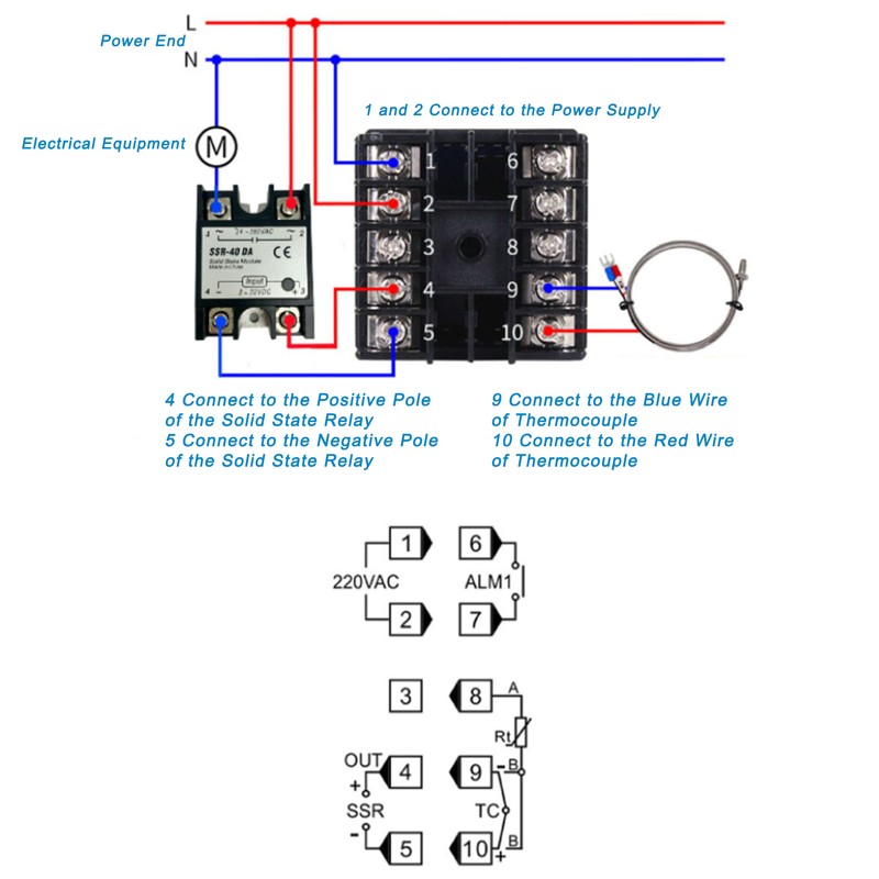 1、Quick Measure: Intelligent PID control enables quick measuring with great convenience, also very reliable. 2、Reliable Work: With over temperature protection, the temp regulator promises smart stabilization for working. 3、Accurate Uses: The practical controller ensures high accuracy in measurement and sensitive response as well. 4、Clear Display: 2 row digital tube display provides clear viewing for easier reading and simpler operation. 5、3Pcs in 1 Set: Including 1pc temperature controller, 1pc solid state relay and 1pc temp sensing thermocouple.