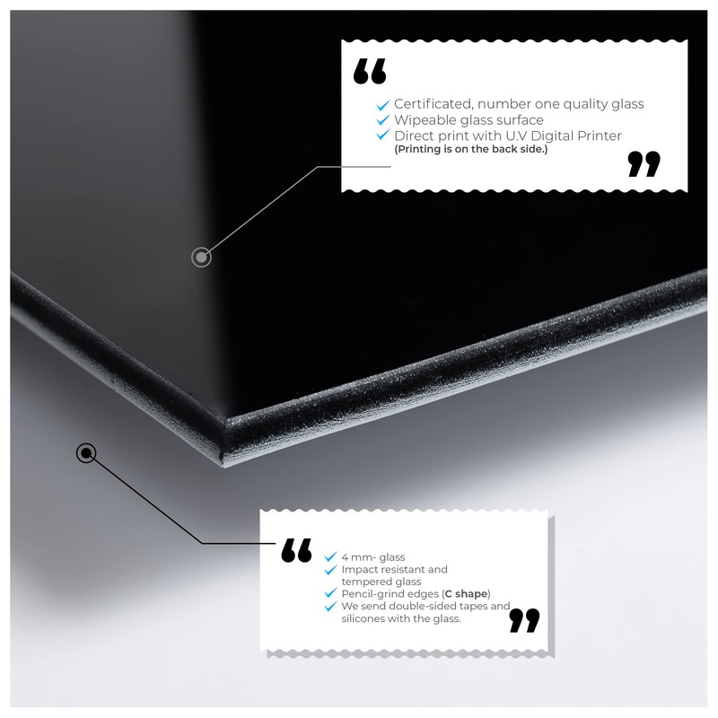 - ✔️Effortless Cleaning: The smooth surface of our kitchen decor allows for easy cleaning since the print is on the back of the glass. Simply wipe away spills and splatters with a damp cloth for a spotless finish.
