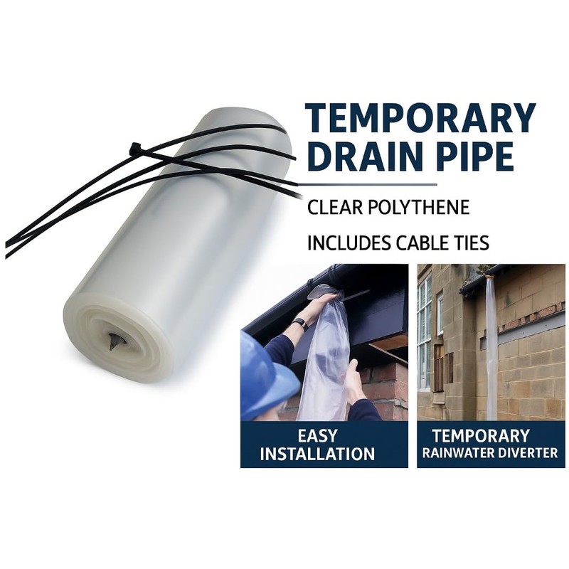Temporary Rainwater Downpipe 10 Metre Kit for Gutter Outlets Storm Drainage