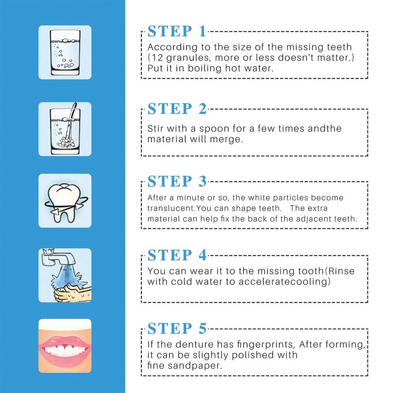 - Versatile Uses – Ideal for broken/missing teeth, Halloween dentures, cosplay, DIY crafts, and more. Shapeable to match your natural tooth color