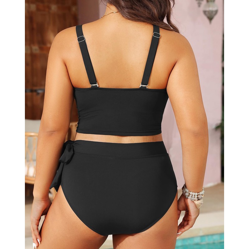 - Plus Size High waisted Bikini: Our black high-waisted swimsuit offers full coverage and a chic tie-side knot, designed to provide tummy control while keeping you comfortable and confident.