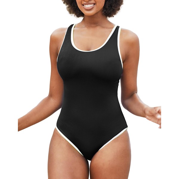 - Ribbed One Piece Swimsuit: This ribbed one piece bathing suit features a removable soft padded bra and adjustable straps for additional support and a perfect fit.