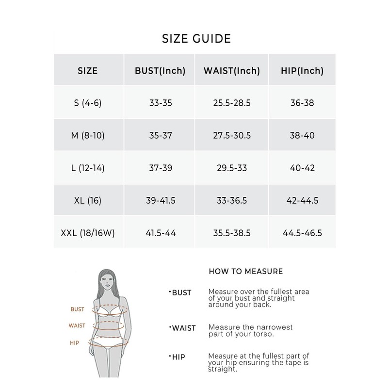 - Available in a variety of sizes: S (US 4-6), M (US 8-10), L (US 12-14), XL (US 16), XXL (US 18). Please choose the suitable size according to the size chart before purchasing.