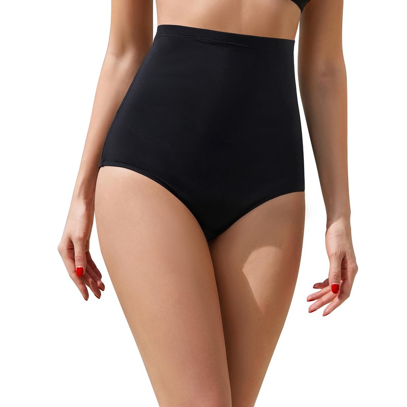 Tempt Me Women High Waisted Bikini Bottoms Full Coverage Tummy Control Swimsuit Bottom, Black, X-Small