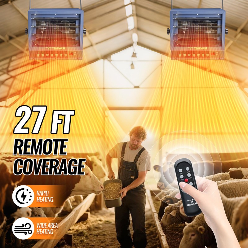 - Built-in Thermostat & Overheat Protection: Equipped with a digital thermostat (45°F–95°F), this shop heater maintains your ideal temperature while the auto-shutoff sensor prevents overheating for added safety.