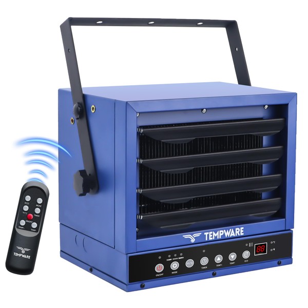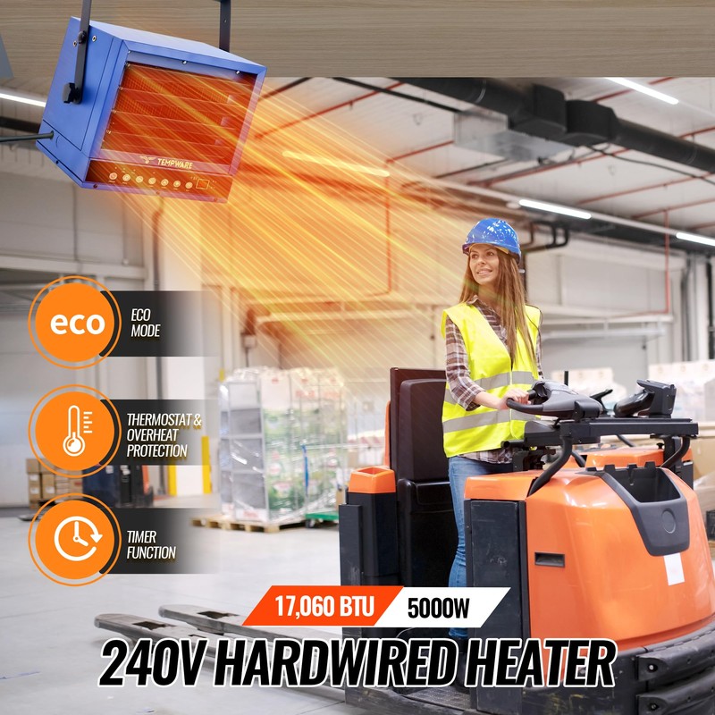 TEMPWARE 5000W Electric Garage Heater, 240V Hardwired Digital Ceiling Mount Fan-Forced Shop Heater with Full-Function Remote and 12-Hour Timer, Ideal for Workshop Warehouse