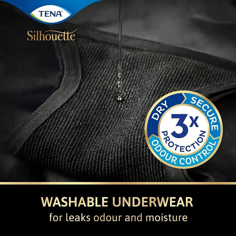 TENA Silhouette, Women's Washable Incontinence Pants, Soft and Stretchy,3X Protection Light Leaks, Dry and Secure with Odour Control,Pack of 1, Black, Size M