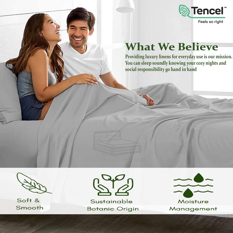 - ♥ EASY CARE: Cottington Lane Eucalyptus Tencel Lyocell bedding is softer than silk and cooler than linen. It also has a luxurious sheen. It's so easy to care for: gentle machine washes and tumbles dry on low steam if preferred. It actually gets softer the more you wash it and it also does not pill as fast as cotton.