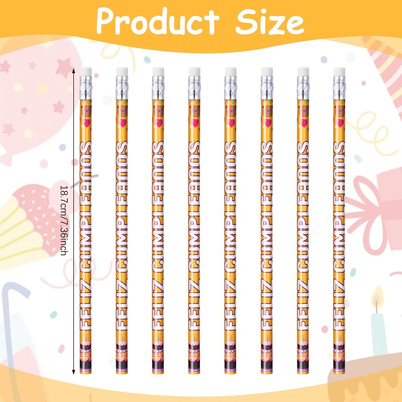 - Portable Size: each wooden spanish happy birthday pencil measures approximately 7.3 x 0.28 inches /18.7 x 0.7 cm when unsharpened; The smooth surface and comfortable grip make them easy to use, carry, and store, ideal as student gifts or birthday party favors
